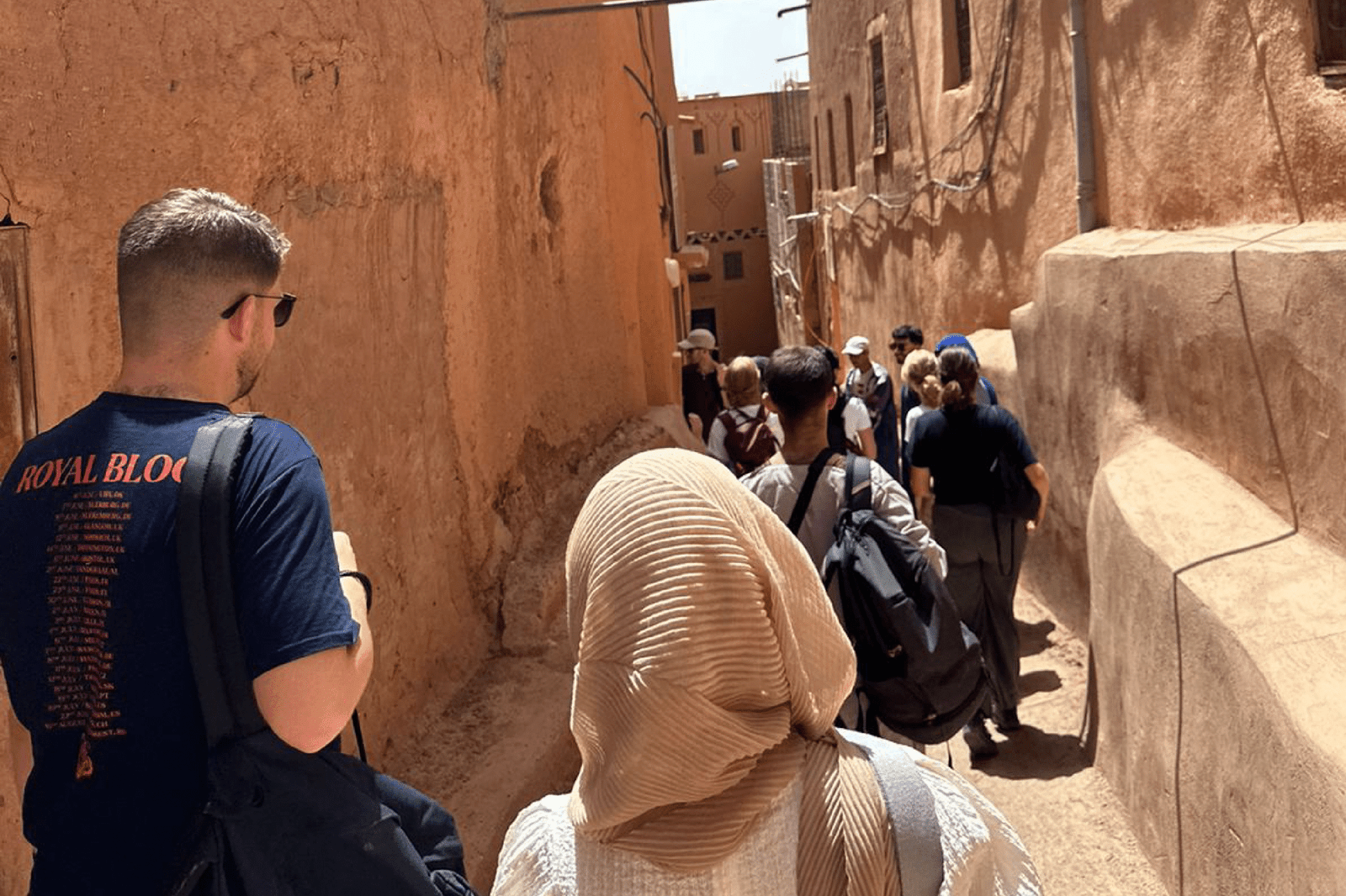 Day 3: Through the Atlas Mountains to Skoura We’ll begin a scenic drive through the High Atlas Mountains, a journey that reveals Morocco’s diverse landscapes. We’ll stop to explore the ancient, earth-built ksar of Aït Benhaddou before continuing to the lush Skoura Oasis. Here, you’ll have dinner with a local family or in a community-owned guesthouse, offering a true taste of local life.
