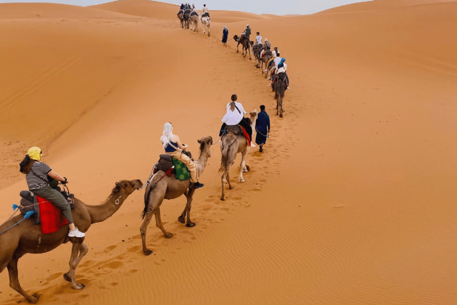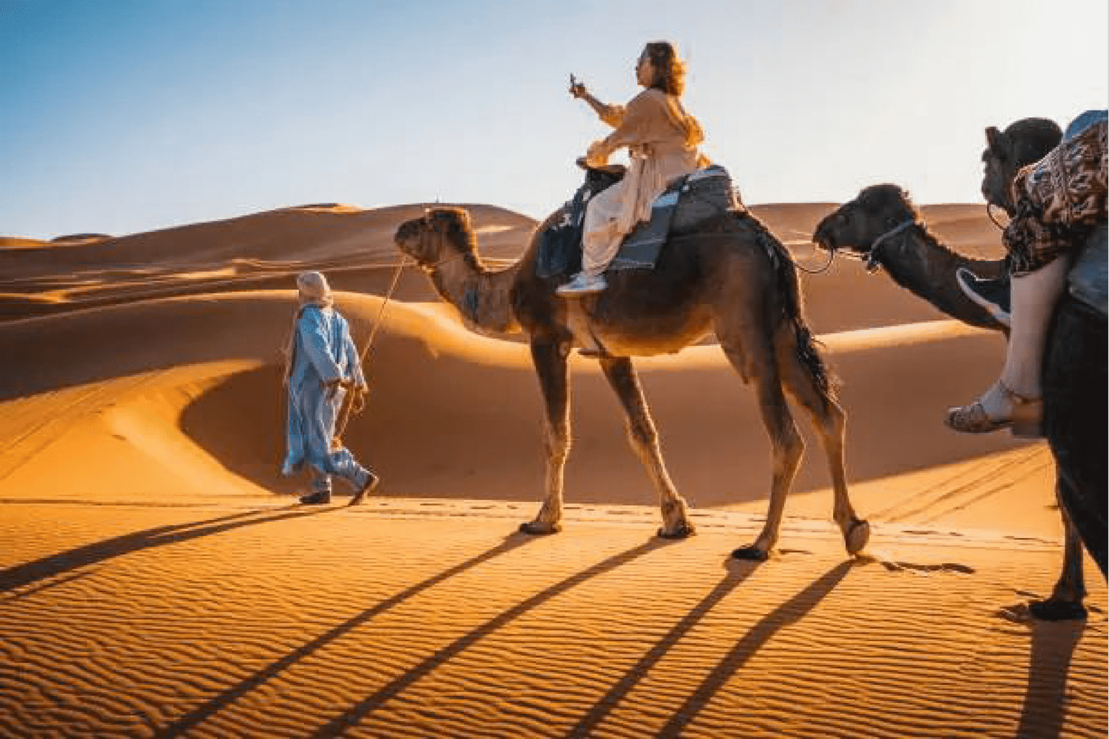 Day 2: Into the Heart of the Sahara After a traditional breakfast, we’ll visit the spectacular Todgha Gorges. The path then leads us toward the vast desert. Upon arrival in Merzouga, our camel caravan will be waiting. A peaceful camel trek will take us into the heart of the Erg Chebbi dunes to our desert camp. As the sun sets, we’ll gather around a campfire for a traditional Berber dinner and a night of music and stargazing.